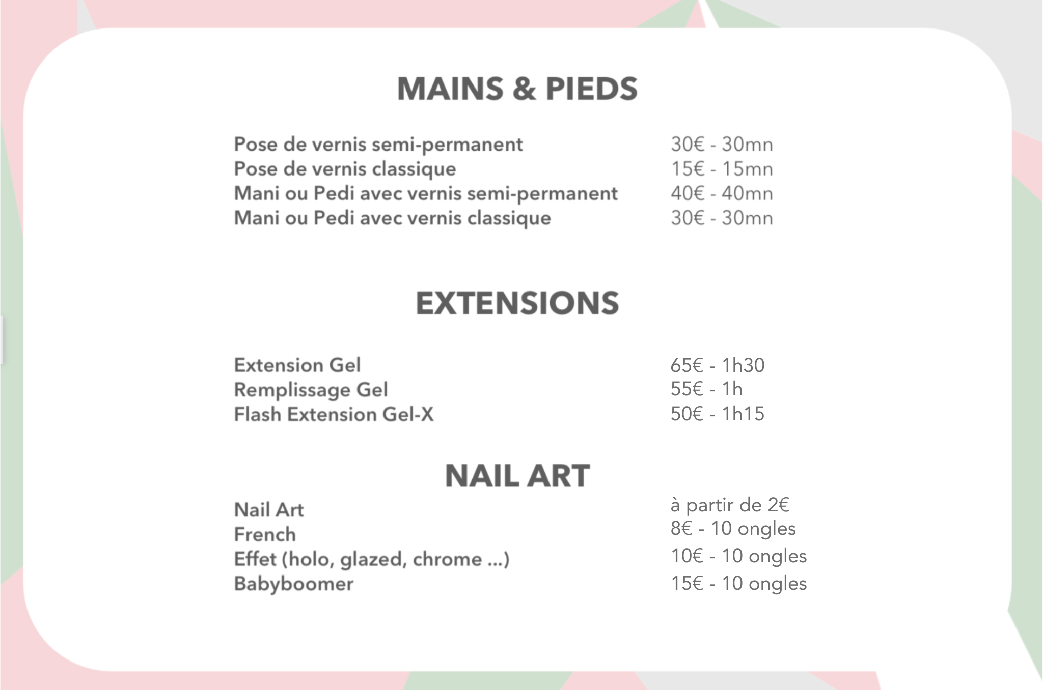 sur vos mesures d’ongles, nail artées à la main par notre équipe !